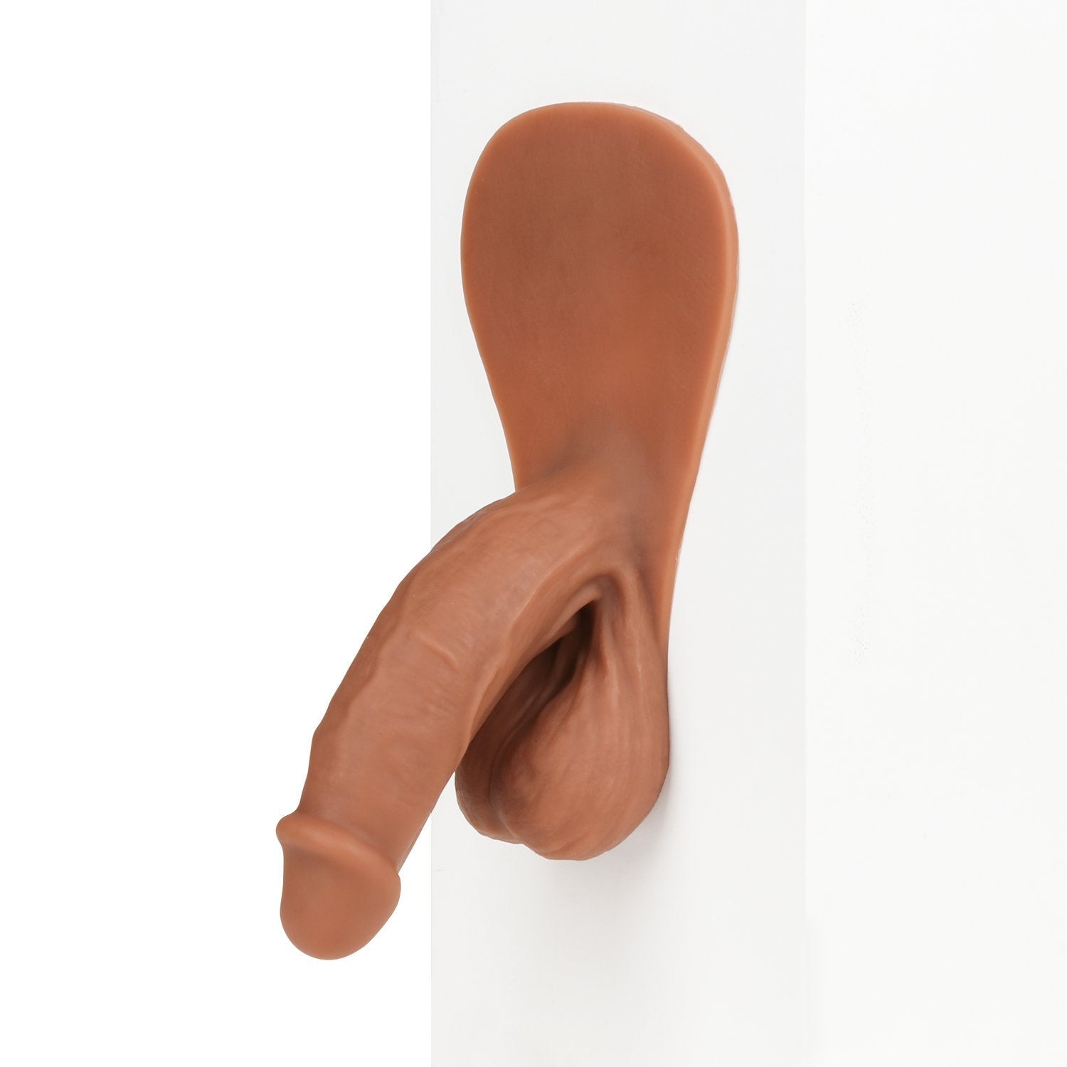 The same look as our Monsieur Wiggle, this is a circumcised version. It is a naturally bent packer with detailed veins and folds. It has a soft texture, a long and girthy shaft as well as elongated balls. This product also has a tab that may be affixed to the body using self-adhesive sheets*. This will provide you with a feeling of natural movement from our prosthetic. If you do not wish to purchase self-adhesive sheets, you can always tuck the tab under the elastic band of your underwear.